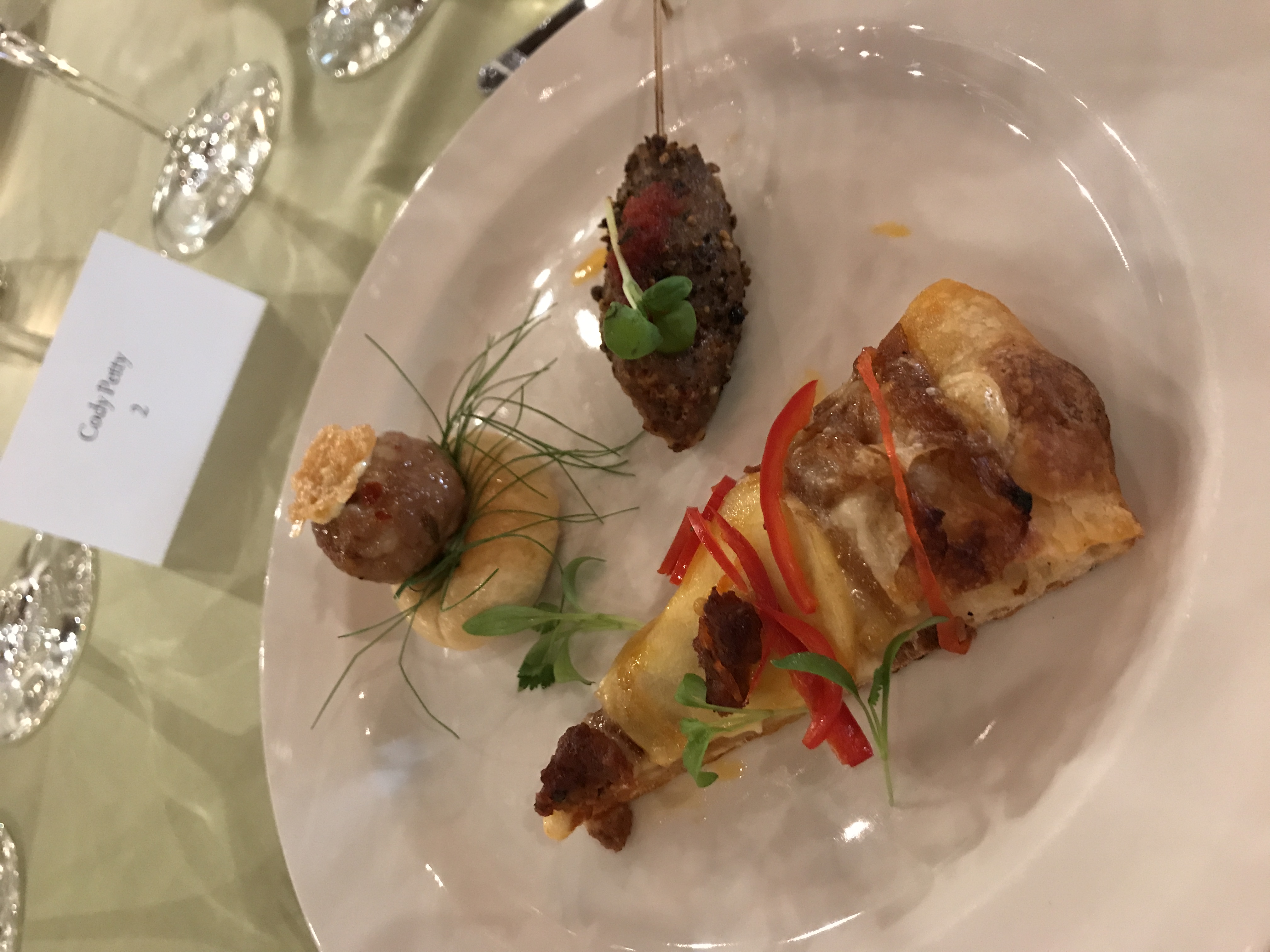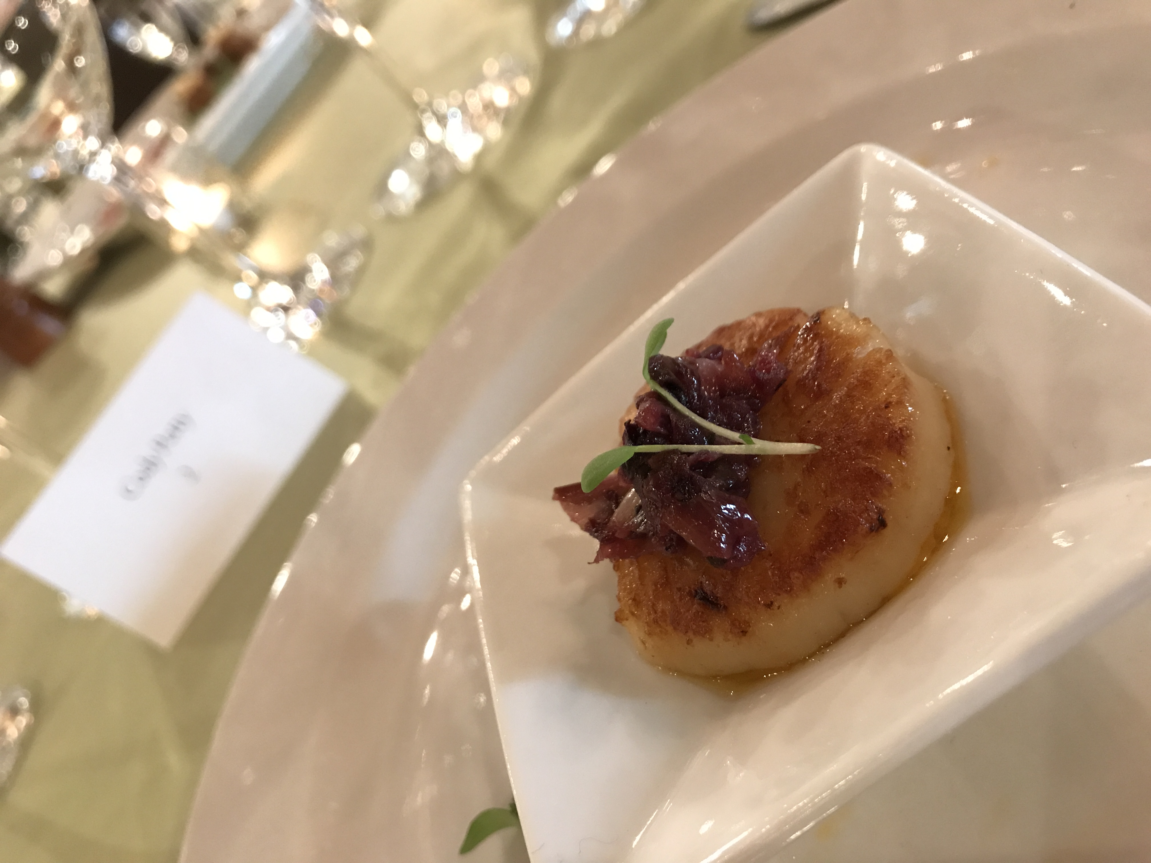 As we walked into our group tasting in the Wente Vineyards Cresta Blanca Room we were handed champagne at check-in and seated at a table with a menu for the evening, a pencil to take notes with, and other brides and grooms-to-be. We also had a Wente catering/wedding planner seated with us to help guide us through our tasting. We didn’t get a ton of photos because we were too busy trying to decide what we loved enough to serve our guests on our big day. Because they offer so many options, you don’t get to taste every single item, but what we did get to taste, we were blown away with.